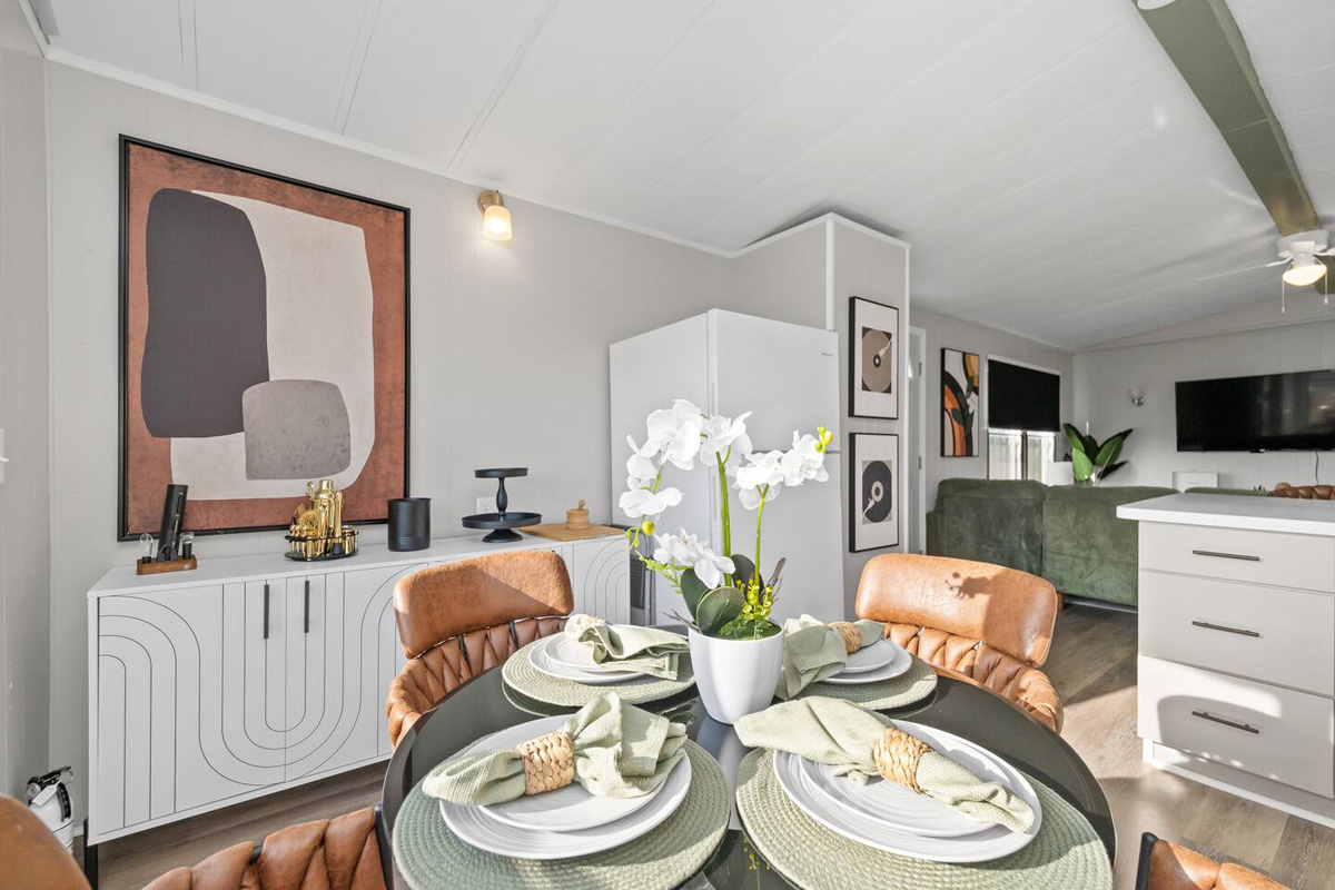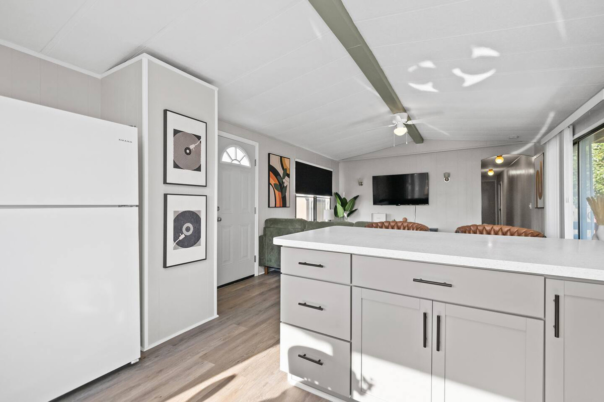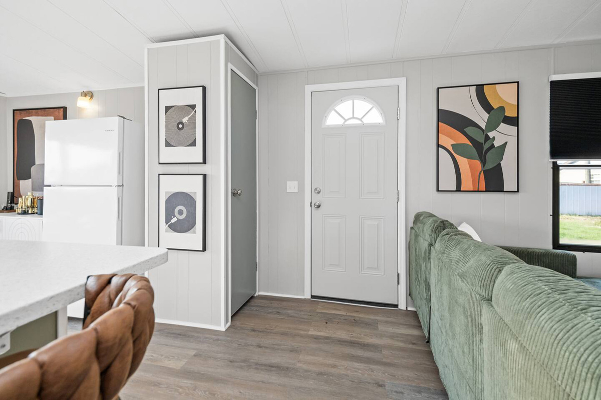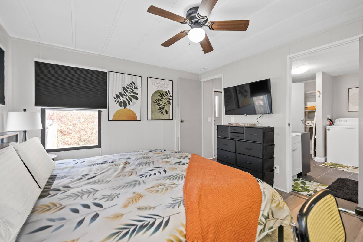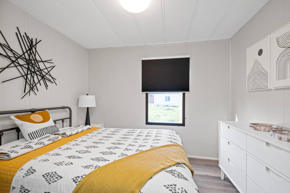Both bedrooms include comfortable bedding and adequate storage, making the home ideal for couples, small families, or traveling professionals.