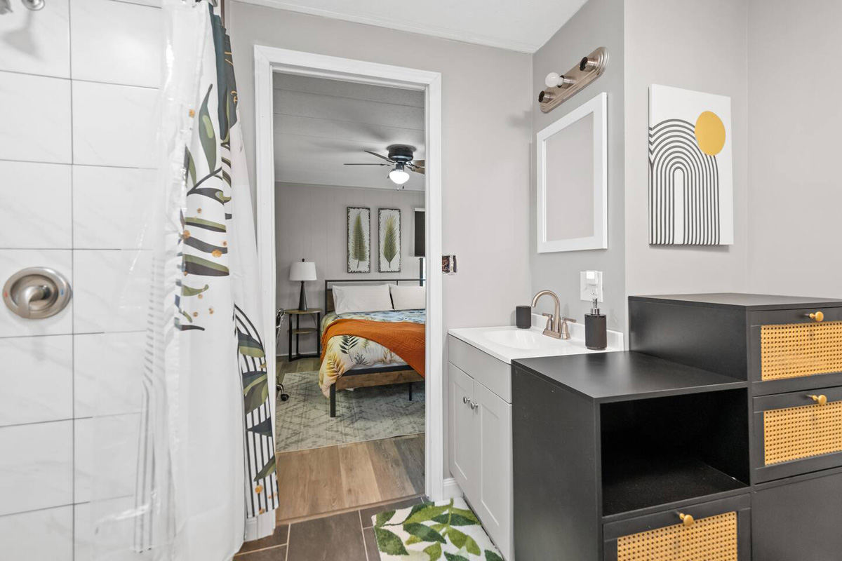The home includes a clean, modern full bathroom equipped for everyday use.